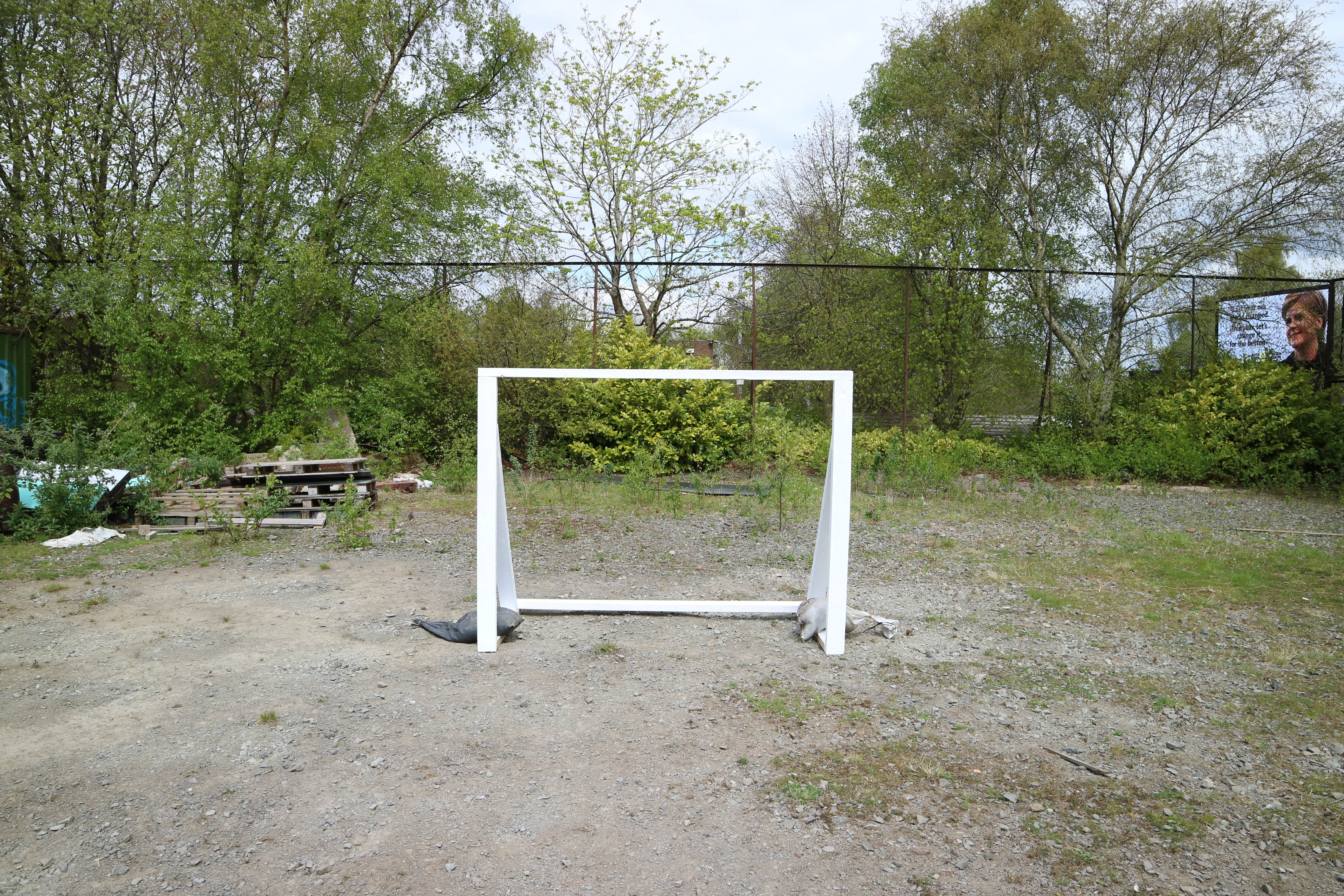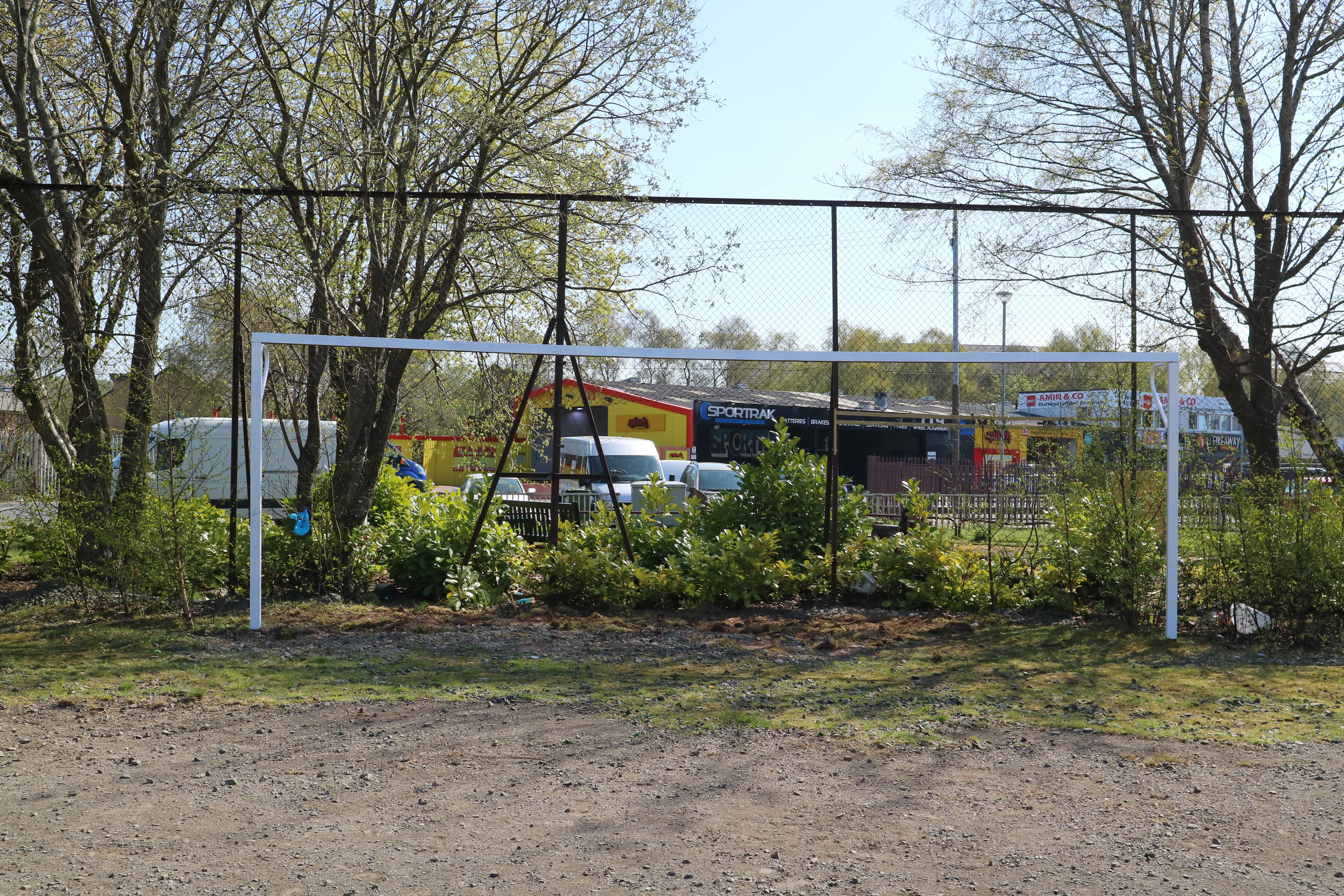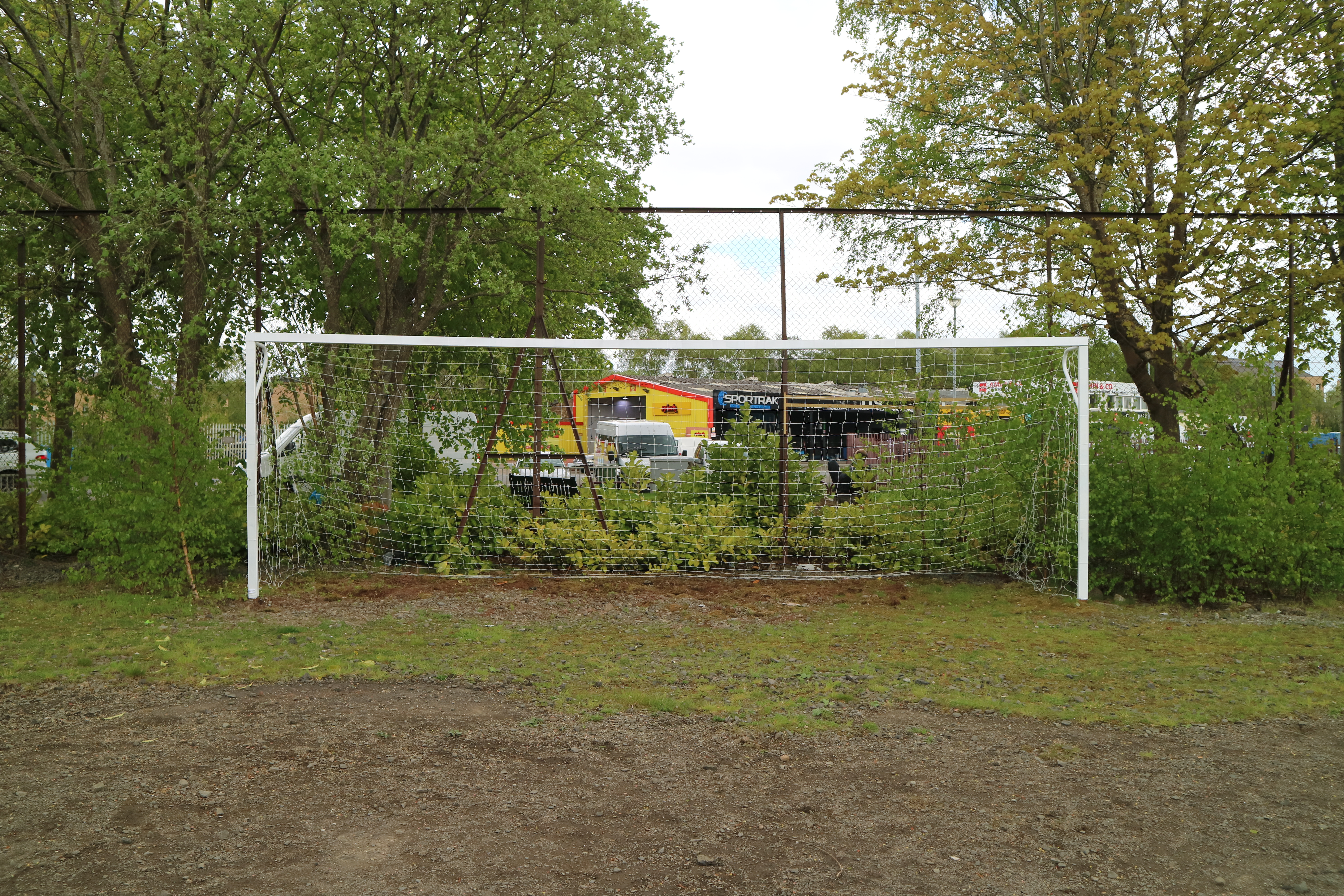 This site used to be a full sized football pitch. This is an attempt to make the remaining third of the pitch playable again. An area for penalty shoot-outs, practicing corners, headers and volleys, free kicks just outside the box and for a place to sit and watch.