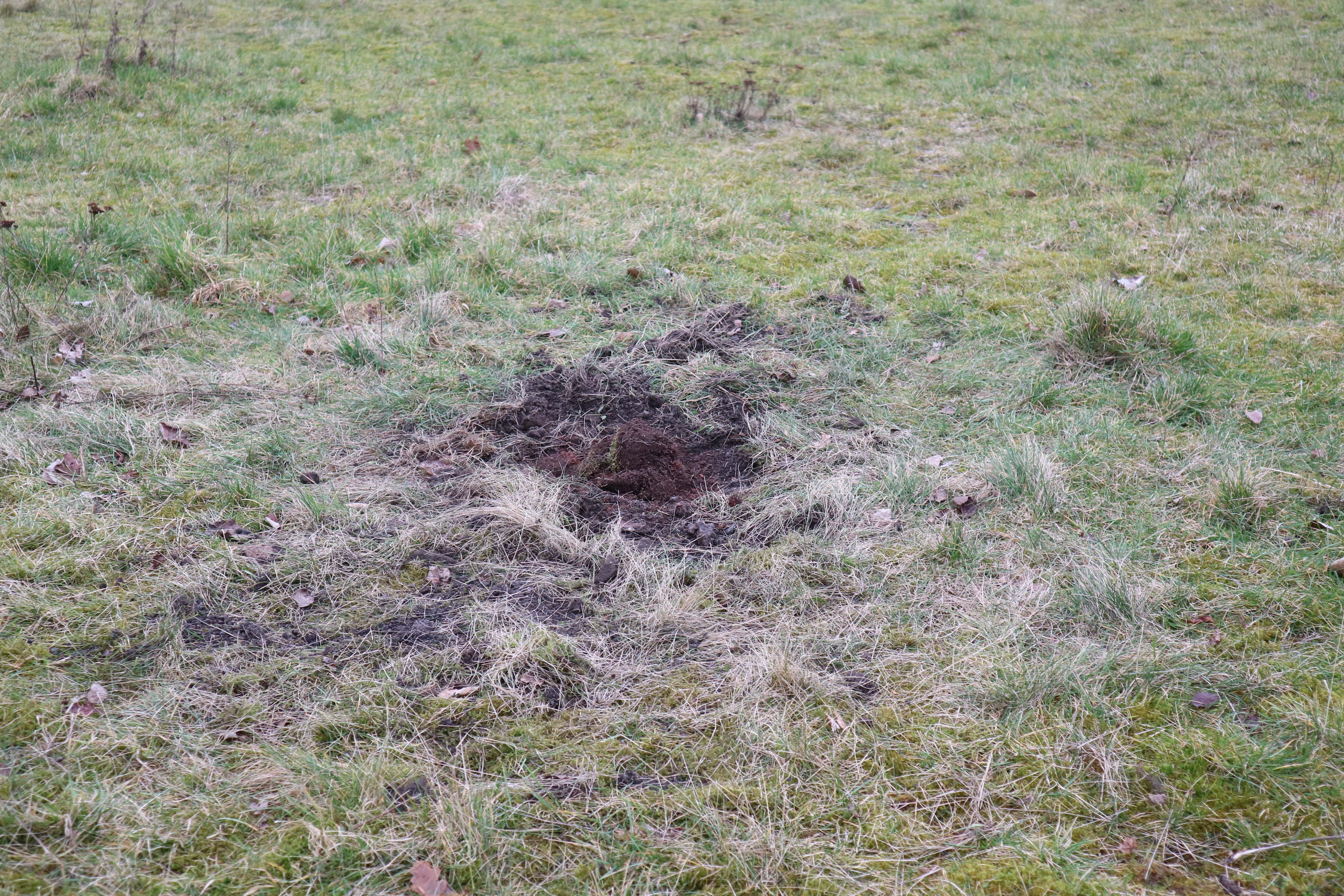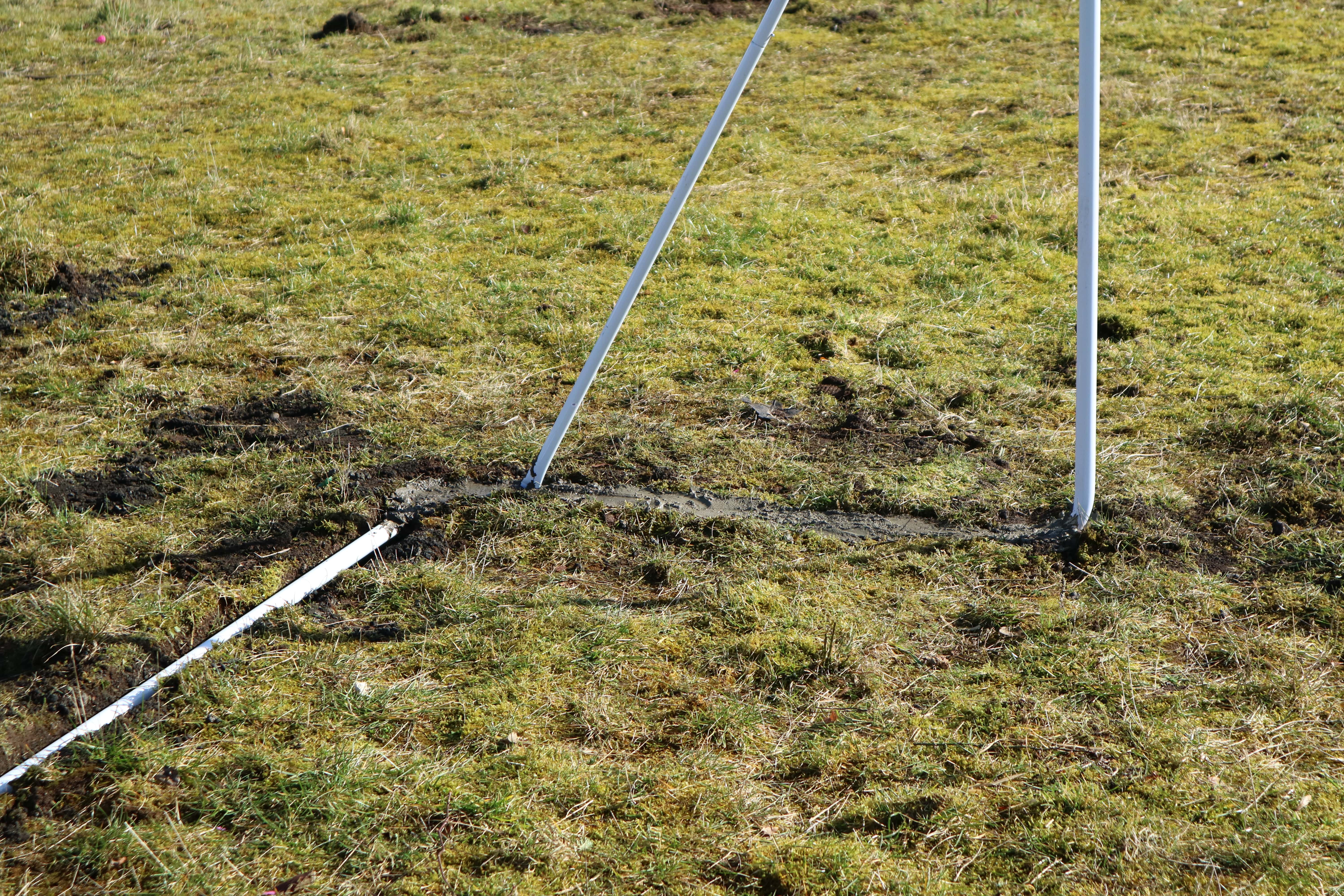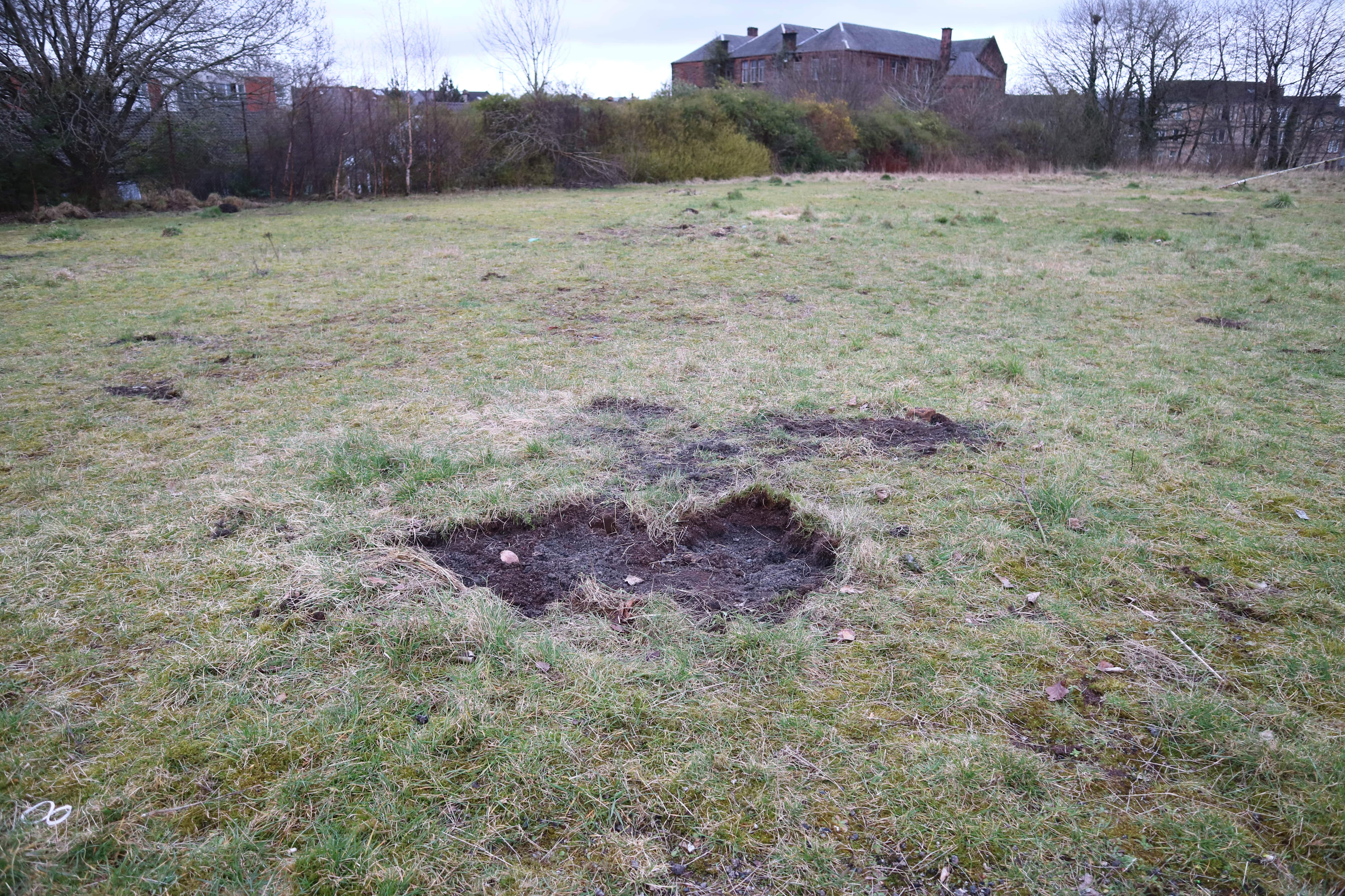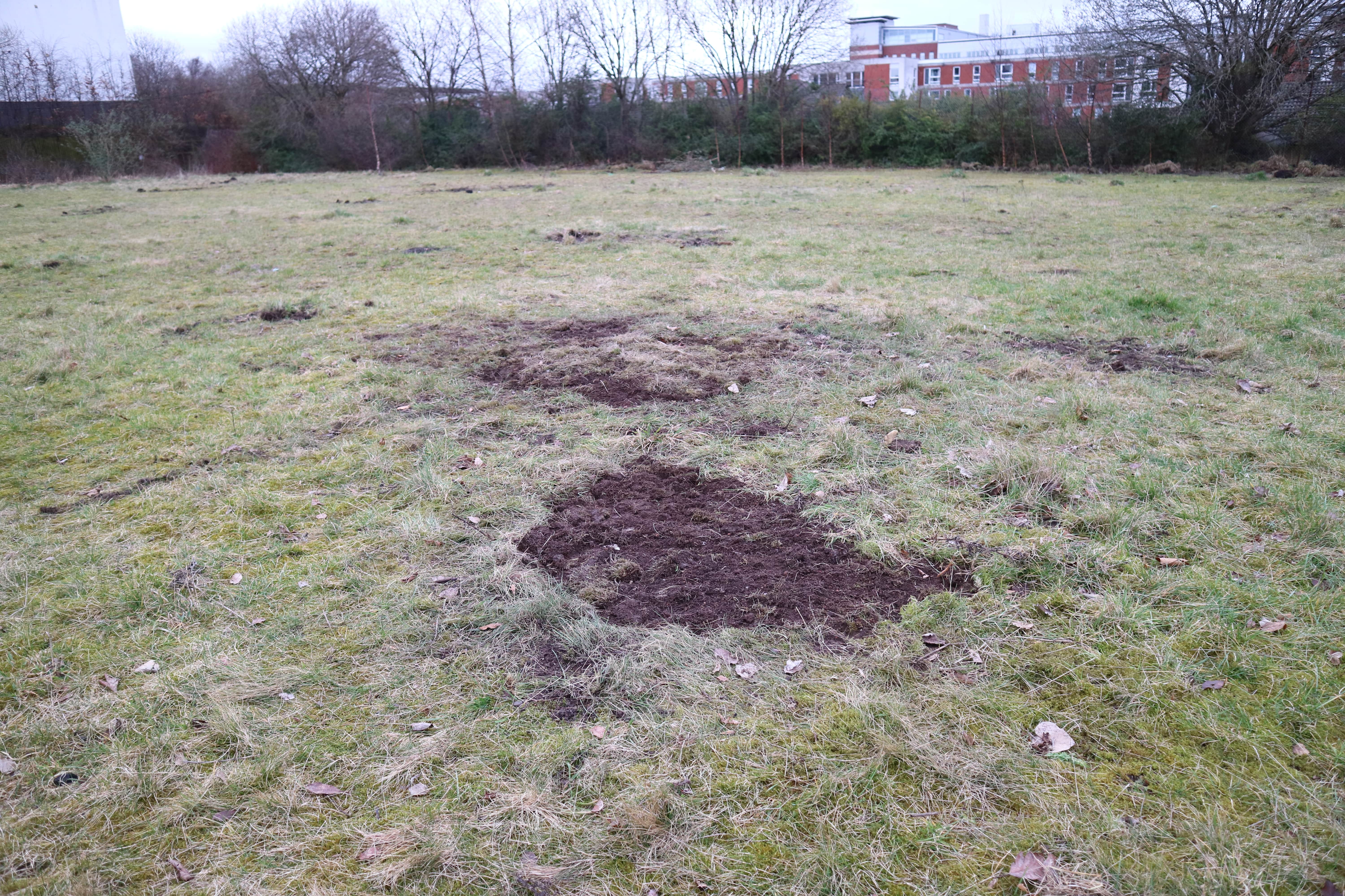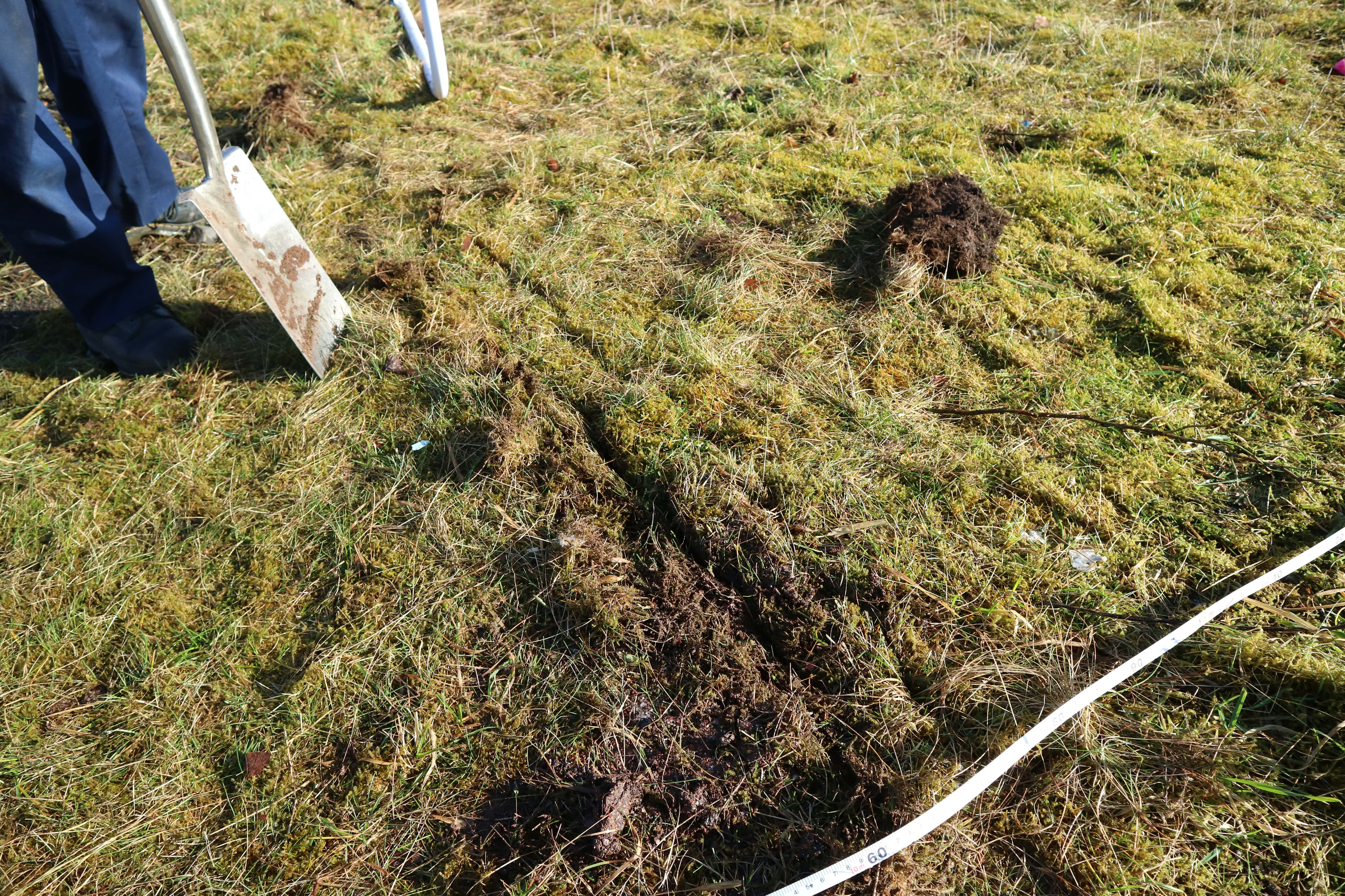 8th March. Beggining to fill in holes, flatten out surface and mow the grass.