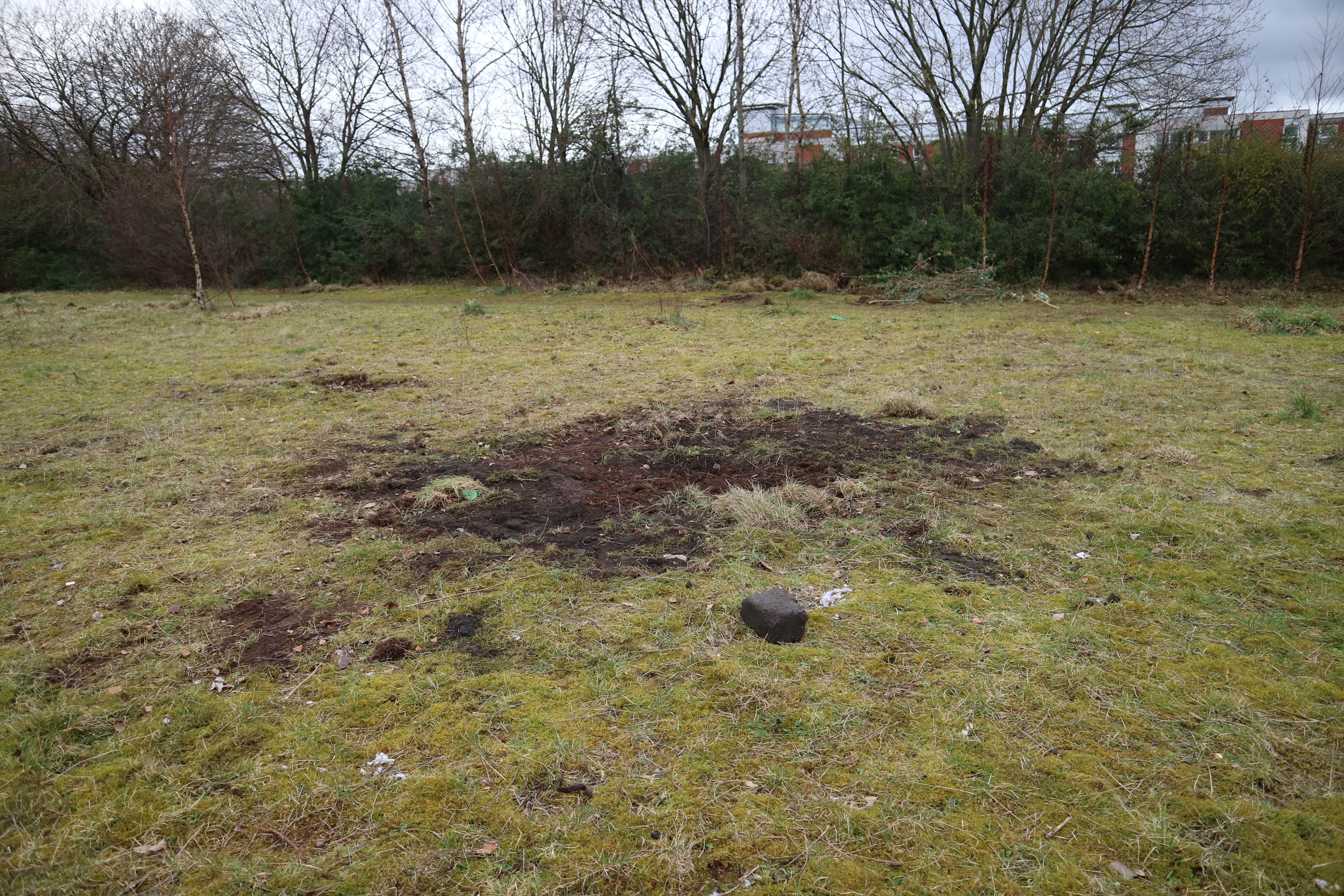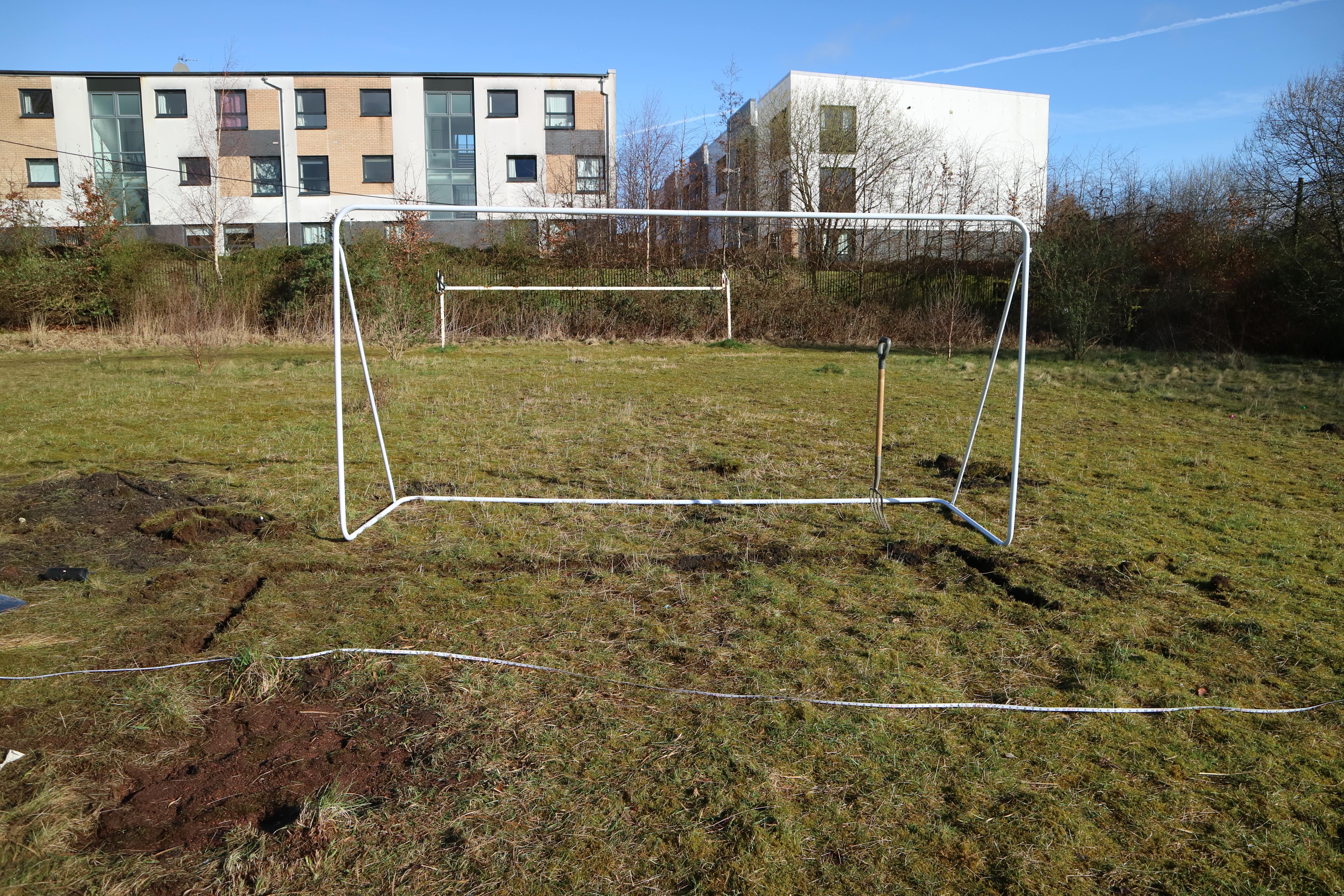 5th March. Removal of trees, shrubbery and bushes growing on pitch using shovels, rakes and saws.