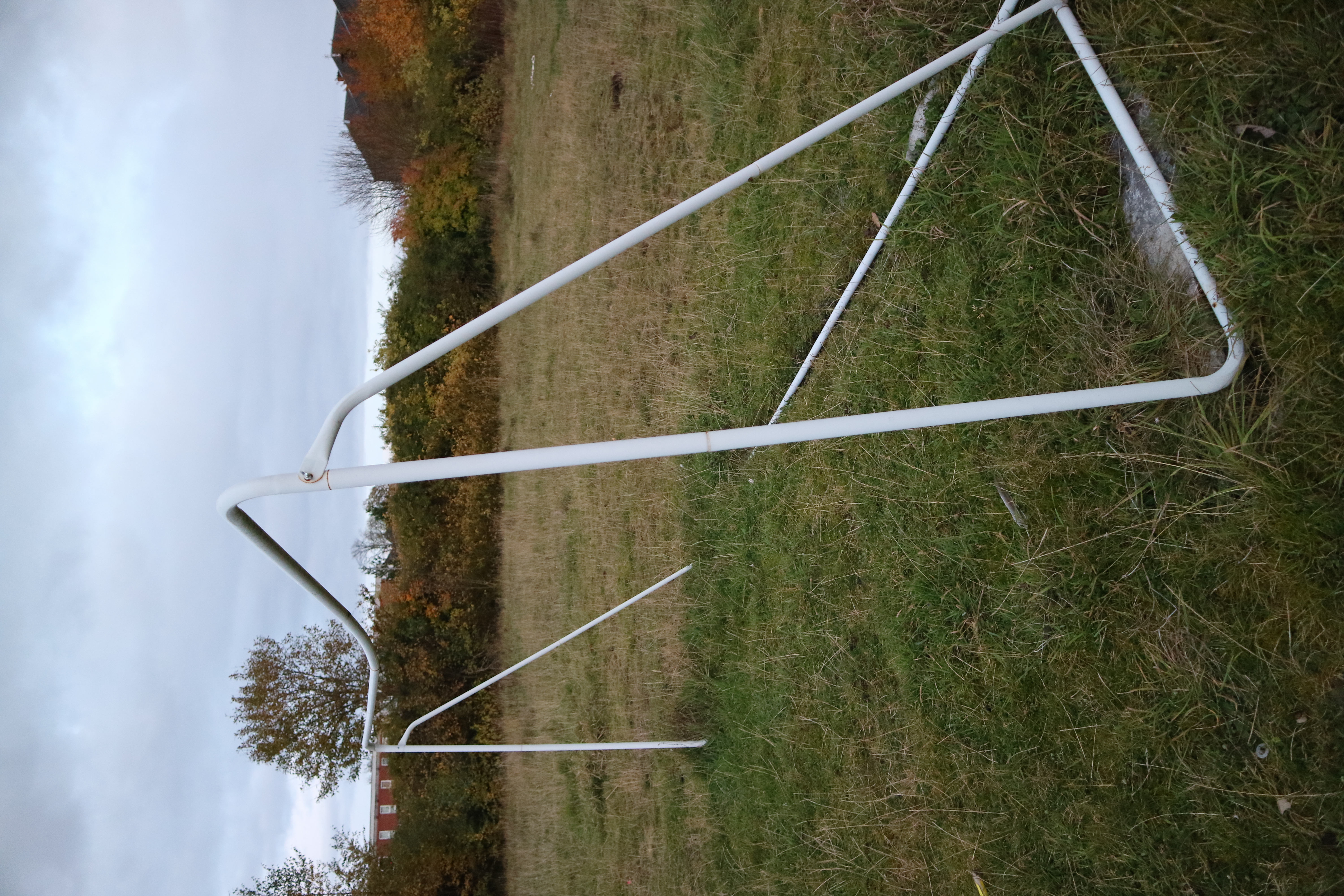 State of goals one year later from the restoration of the football pitch. Crossbars bowed and parts of the bases of goals have lifted from the concrete. The pitch is becoming unplayable again.